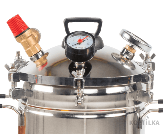 3. Заполнить консерватор водой, зафиксировать крышку и поставить на плиту. Не забудьте засечь время!